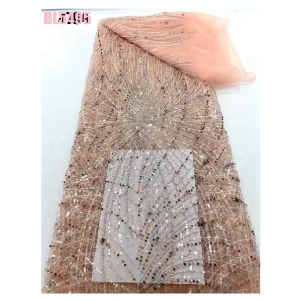 Top quality lilac handmade beaded lace embroidery african french lace fabric wedding dress bridal Ghana fabric women clothing Images |
